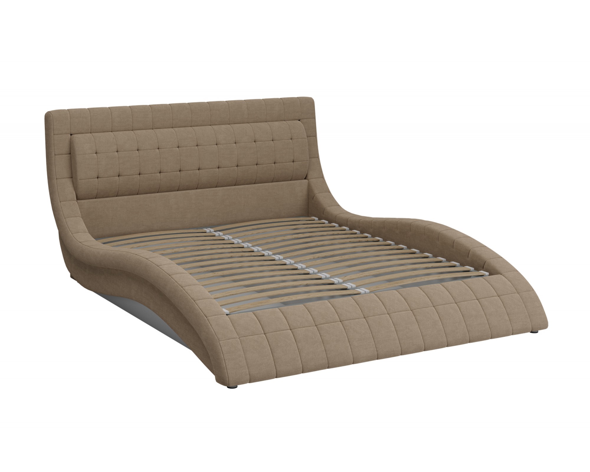 Мягкая обивка изголовья и основного каркаса. Цвет: бежевый.