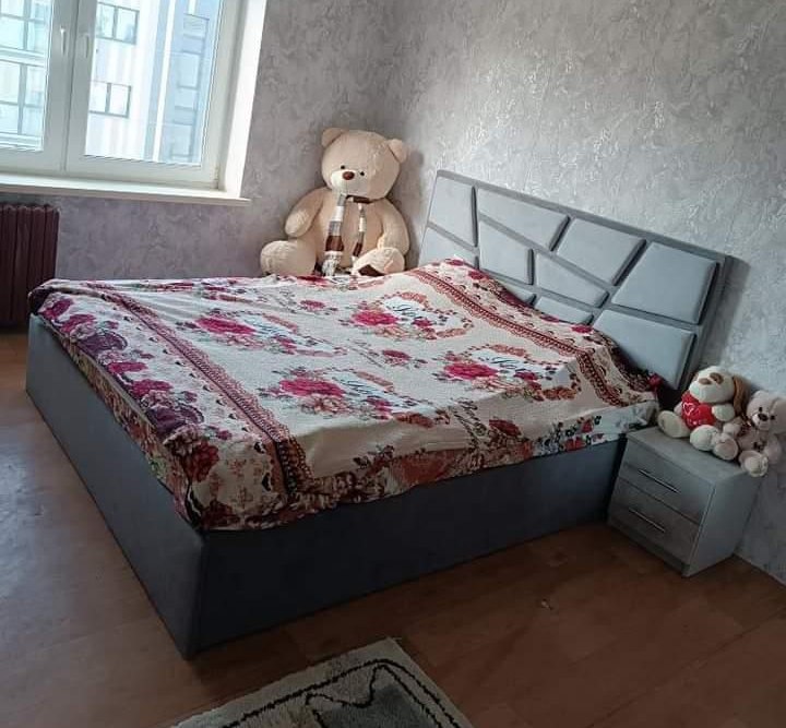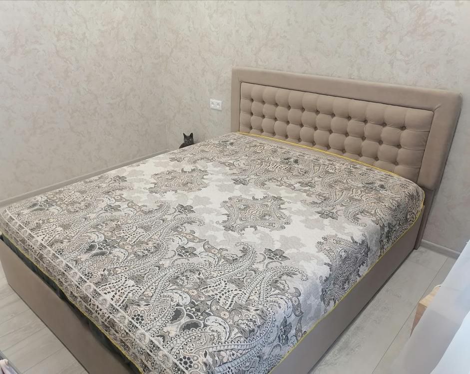 Двуспальная кровать с ортопедическим основанием и мягким изголовьем.
