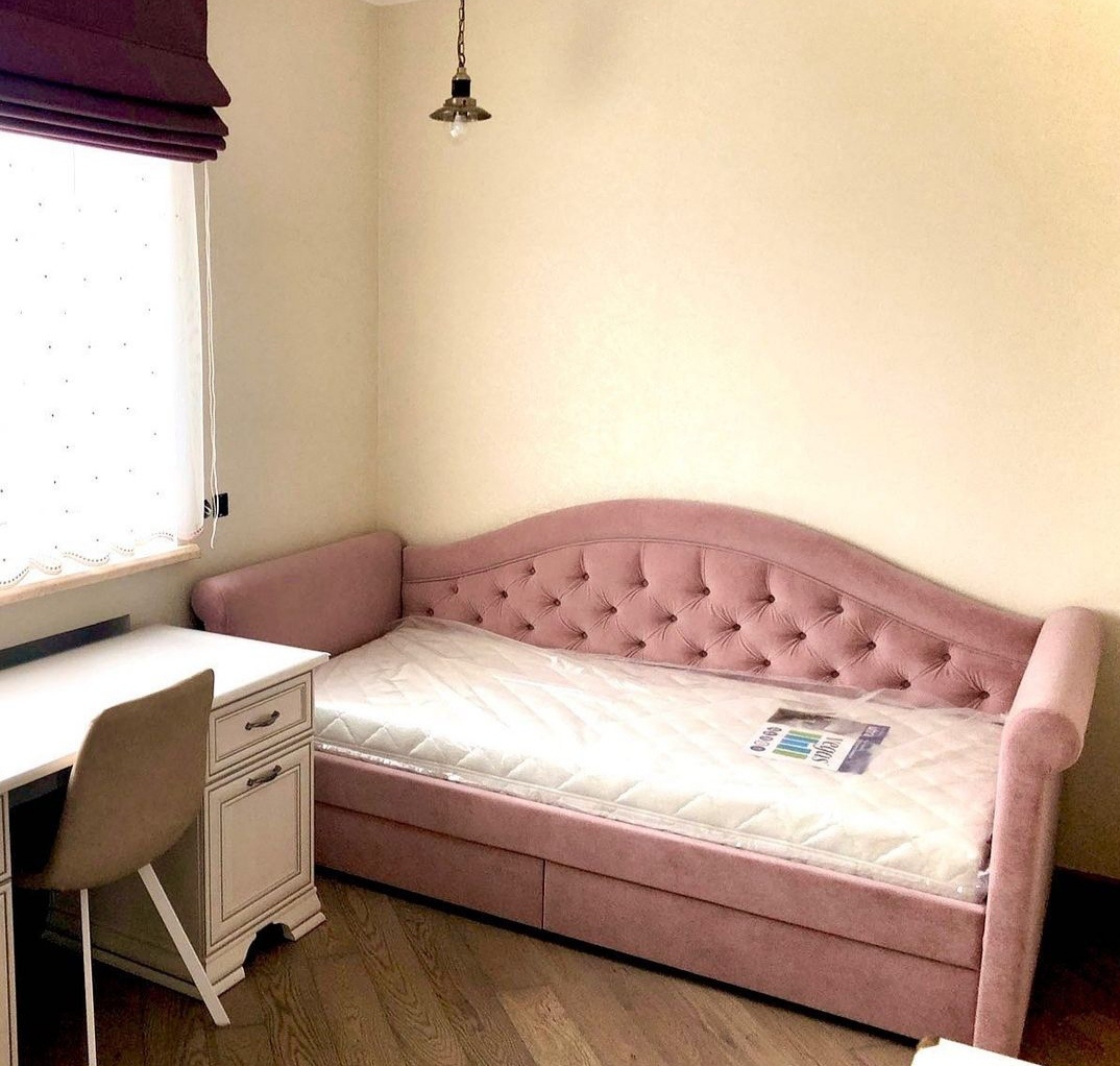 Выполнена в сером цвете. Просторное и удобное спальное место.