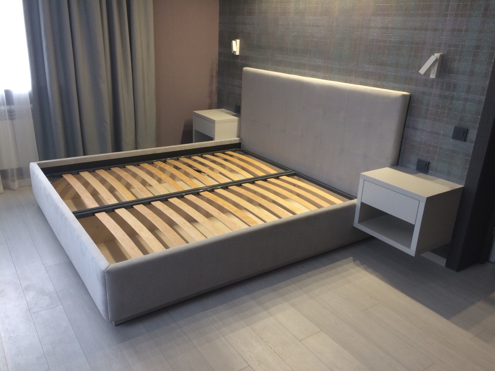 Оригинальное геометричное оформление изголовья кровати. Современный дизайн для нескучных интерьеров. Большой выбор тканей обивки.