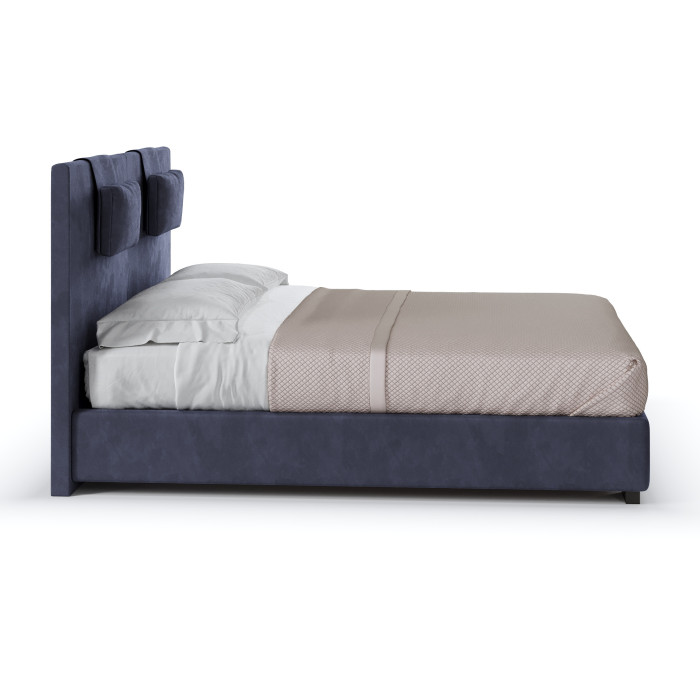 Современная кровать с ортопедическим основанием и мягким изголовьем.