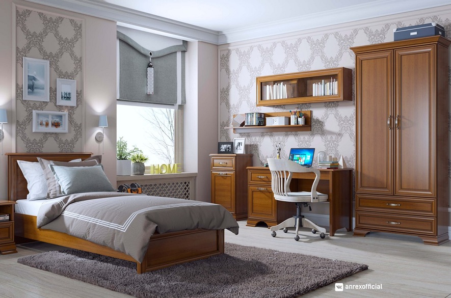 Набор мебели для спальни «Тиффани» выполнен с изящными акцентами. Спинка кровати выполнена с элементами декора. Красивая удобная и надежная полуторная кровать Тиффани на ортопедическом основании размером 120х200 см из классической коллекции модульной мебели. Кровать имеет рамочное оформление, что придает ей красоту и четкость линий.