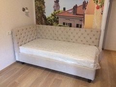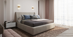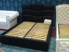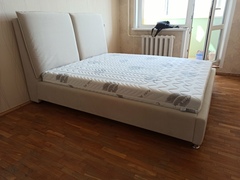 Мягкое высокое изголовье с каретной стяжкой. Удобное спальное место.