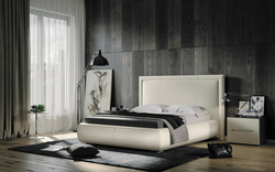 Изголовье и фасад с мягкой вставкой со стяжкой. Цвет: белый. Любой размер и ткань. Выезд дизайнера на дом.