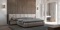 Удобная мягкая кровать с устойчивым изголовьем, удлинённым и оснащенным высокими регулируемыми подголовниками.
