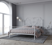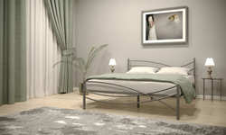 Кровать на металлическом каркасе с мягким изголовьем и ортопедическим основанием.