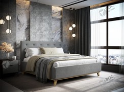 Кровать «Оливия» 160х200, микровелюр светло-серый (Олмеко)