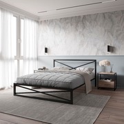 Кровать на металлическом каркасе с мягким изголовьем и ортопедическим основанием.