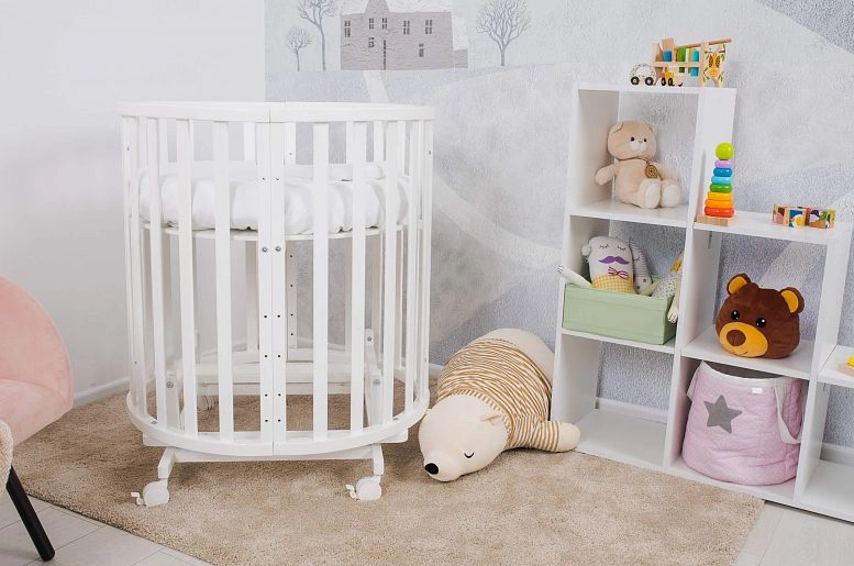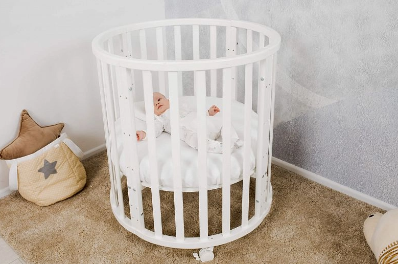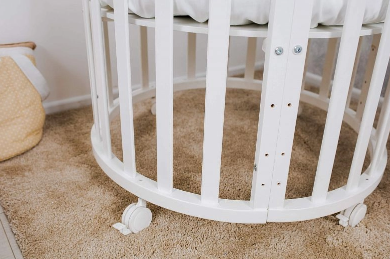 Круглая кровать на колесиках (благодаря им кроватку можно передвинуть в любое место)