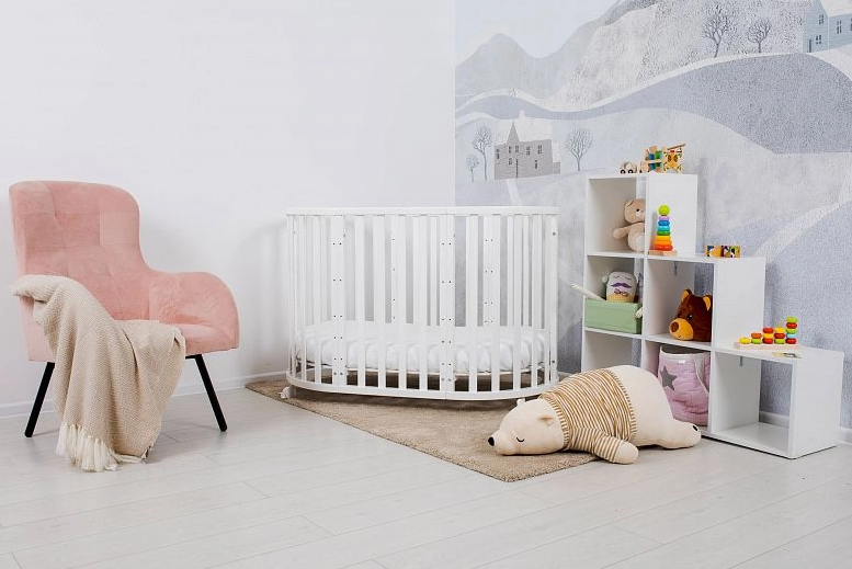Овальная кровать на колесиках (когда малыш подрос, уютная круглая колыбель трансформируется в просторную, овальную кровать)