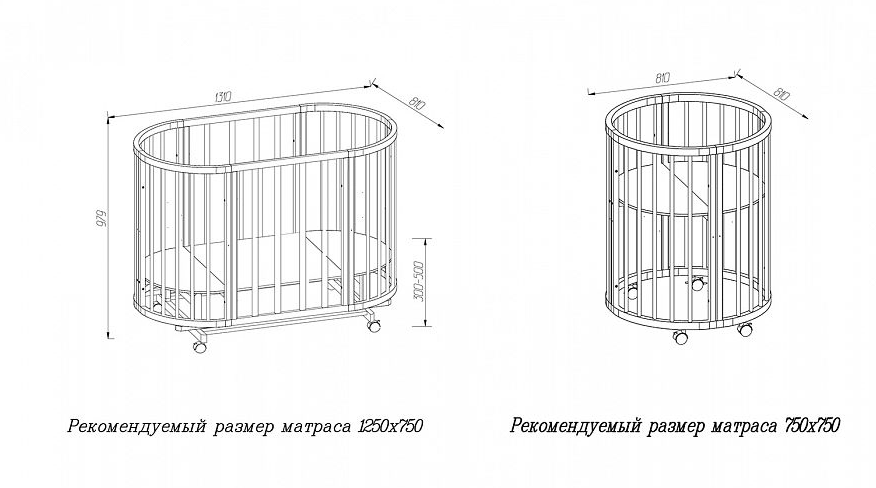 - Овальная кровать: габаритные размеры, см - 131х81х97,9; диаметр d 125