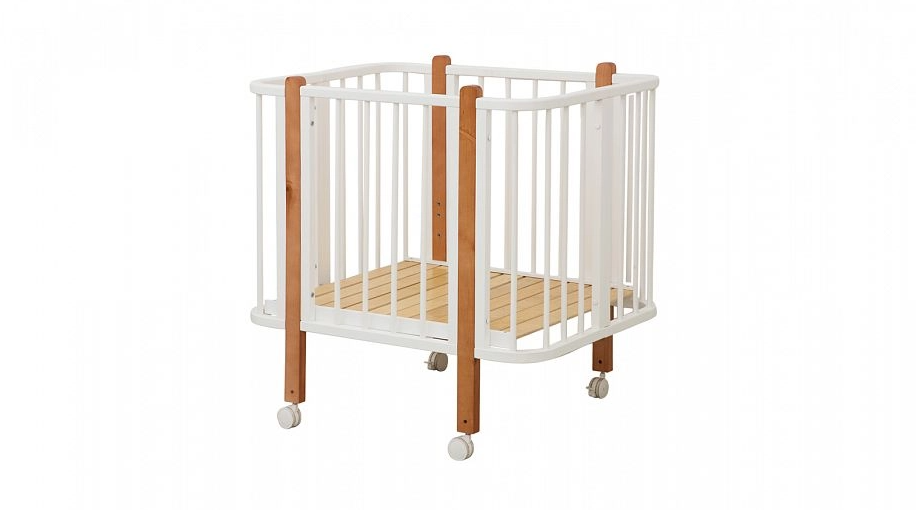 Всегда с вами: кроватка оснащена поворотными колесиками со стопорами – мобильная в перемещении, не повредит напольное покрытие.