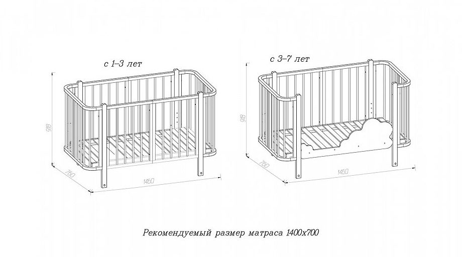 кроватка-трансформер доступна только в одних цвете и размере, нестандартные модели не изготавливают;