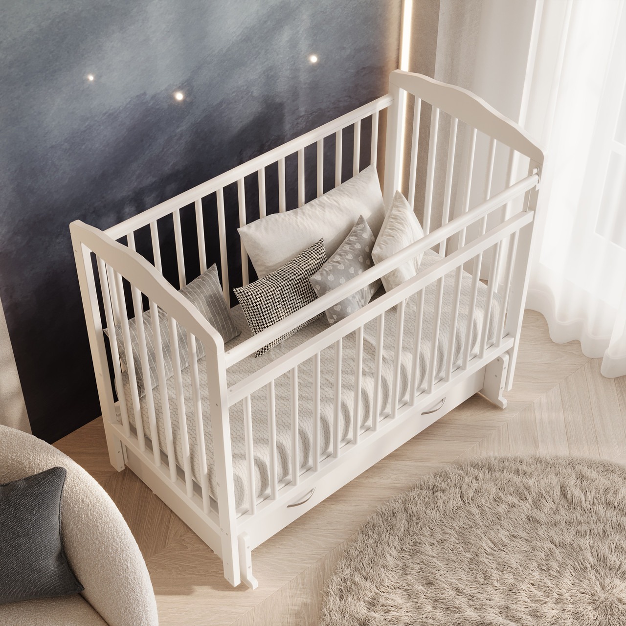- Покрытая безопасной краской, кроватка не имеет запаха и обладает сертификатом соответствия ТР ЕАЭС, гарантируя вашему малышу комфорт и безопасность.