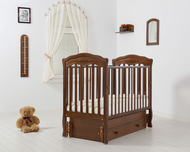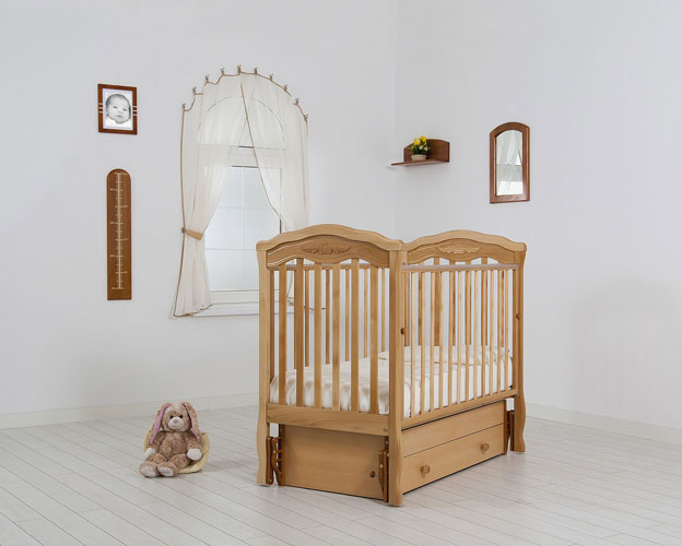 Изящная деревянная кроватка, выполненная по европейским канонам дизайна.