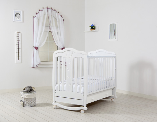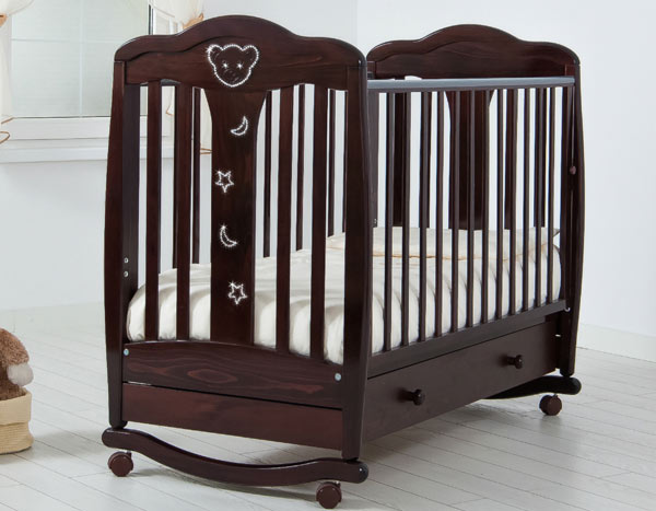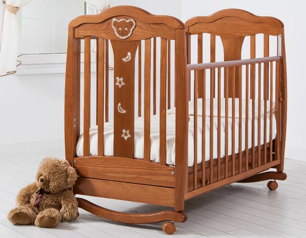 Кроватка «Гандылян Мишель» выполнена из натурального массива бука. Лаковое покрытие нетоксично и не способно вызвать аллергию у малыша. Варианты цвета: натуральный, орех, слоновая кость, махагон, вишня, белый. Модель оснащена небольшими колесиками со стопором.