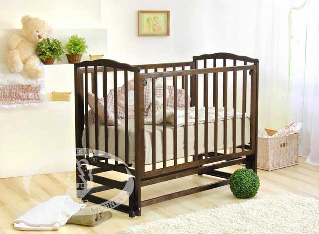 Благодаря тщательной шлифовке и обработке материала, кровать имеет округлые формы и не причинит вреда малышу. В модельной коллекции присутствуют наиболее классические варианты цветовой окраски (красно-коричневый, орех, медовый оттенок и слоновая кость).