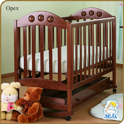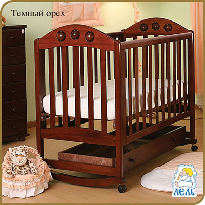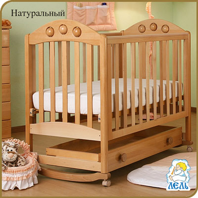 Модель изготовлена из натурального массива бука. Установленные на полозьях качалки колесики позволят без проблем перекатить кроватку на другое место.
