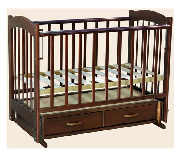 Кроватка оснащена боковыми планками, обеспечивающими ребёнку защиту от случайного выпадения. Маятниковый механизм раскачивания, позволит быстро убаюкать ребёнка. Дополнительная функциональность обеспеивается ящиками для белья, которые удобны для хранения любых детских принадлежностей.