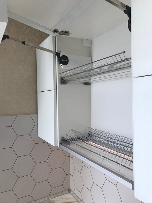 Верхние фасады со стеклом. Ширина кухни 190 см.