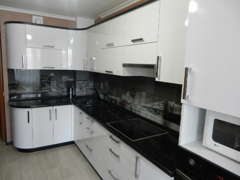 Белая глянцевая кухня с радиусными элементами