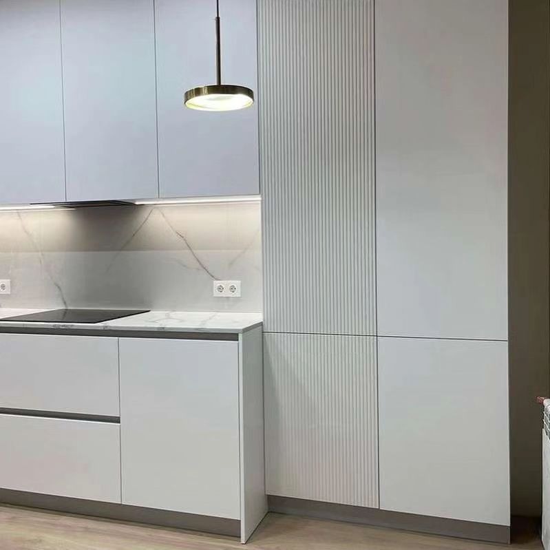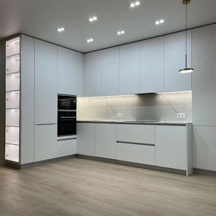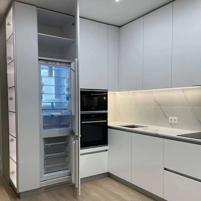 Готовая фабричная кухня под заказ. Фасады матовые с остеклением.