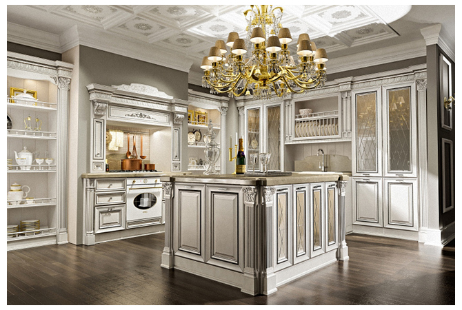 Белая кухня с отделкой в античном стиле «Infinity Platinum»