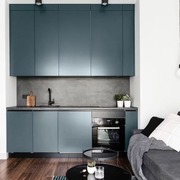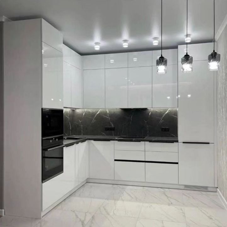 Белые матовые фасады из акрила. Фурнитура: Blum (Австрия).