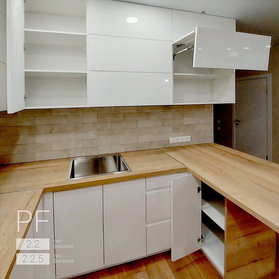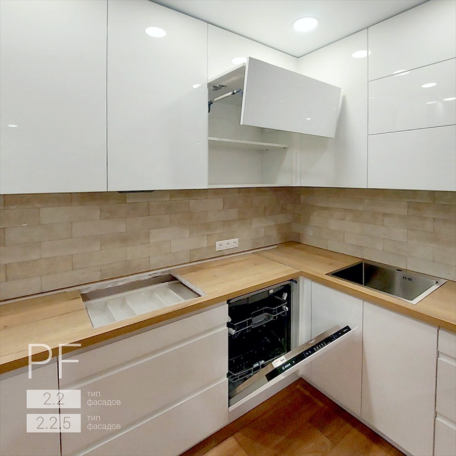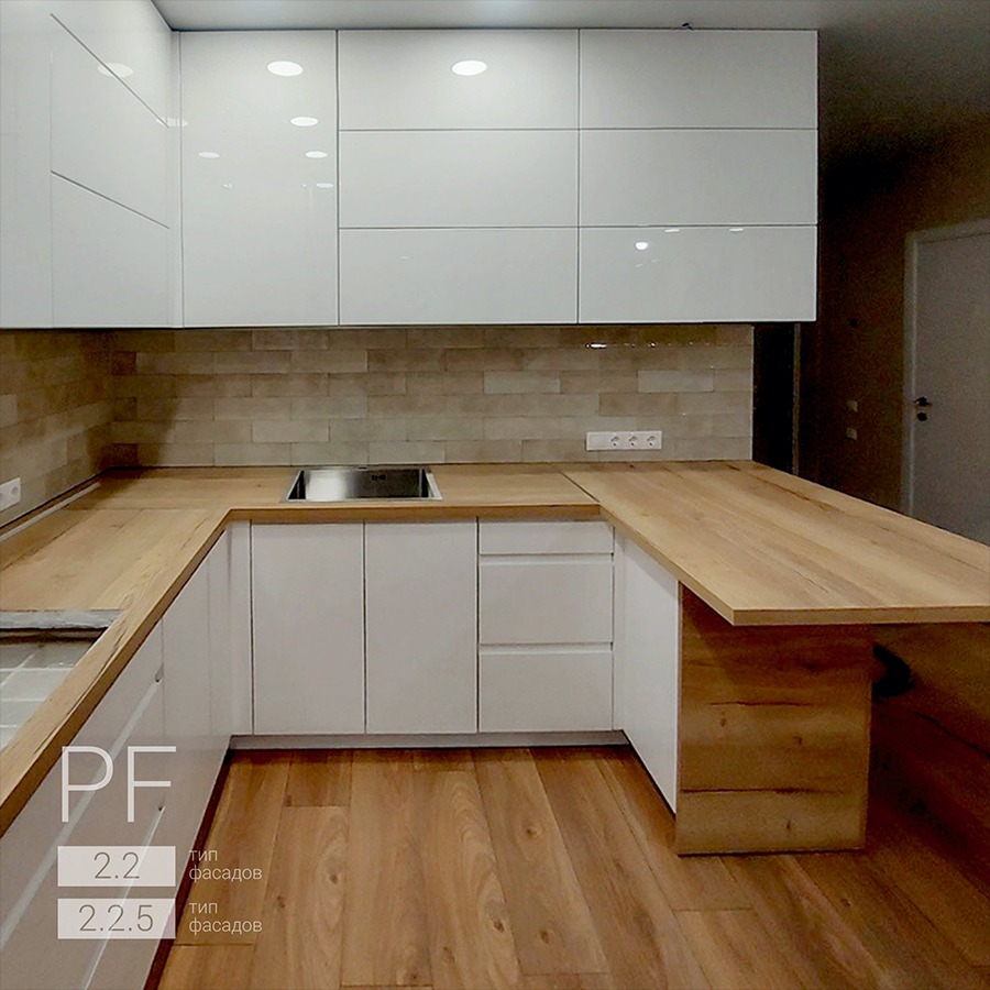 Мебельные фасады: Pan Fasad ТМ (Беларусь), тип фасадов 2.2 и 2.2.5 на основе МДФ крашеные, высокий глянец.
