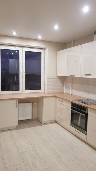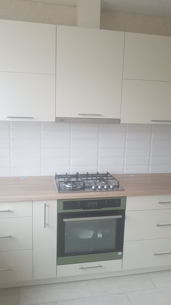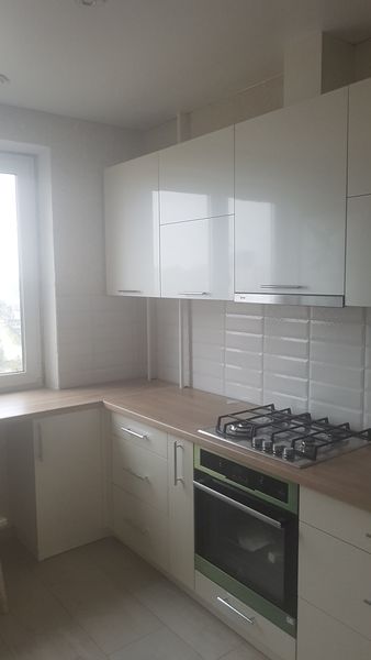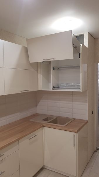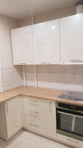 Длина кухни: 3.4х1.4 м. Материал фасада: пластик.