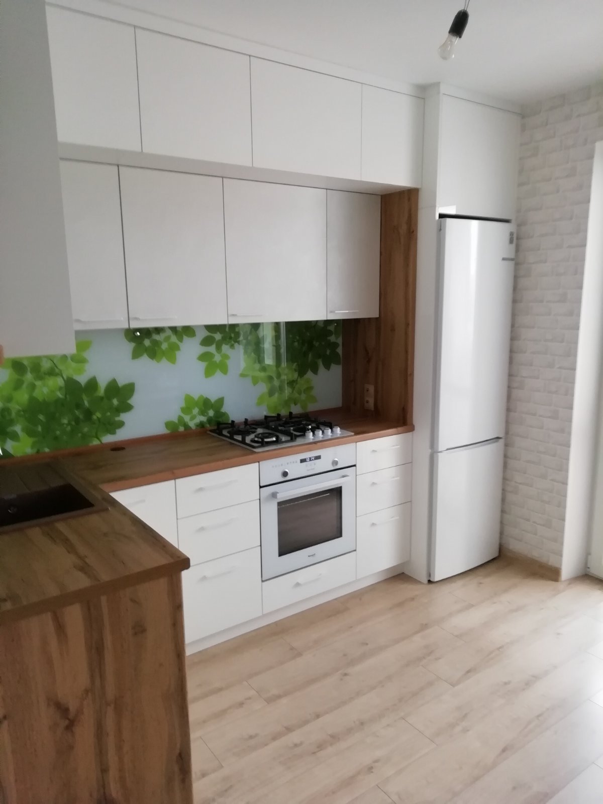 Светлые глянцевые фасады. современная и надежная фурнитура, ниши для техники.