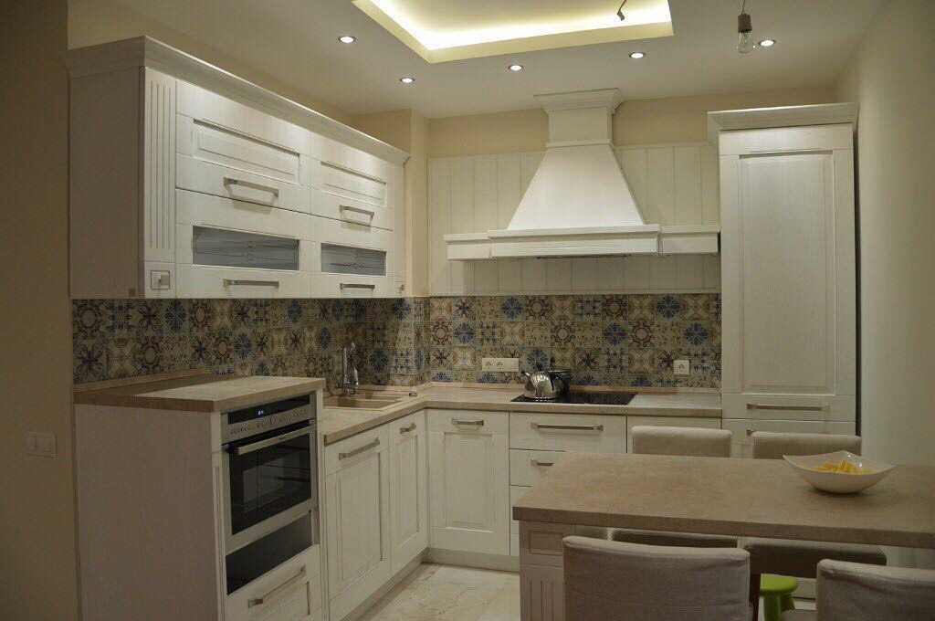 код 88525Стилизация белой кухни в формате Прованс. Филенки и легкая резьба на фасаде.