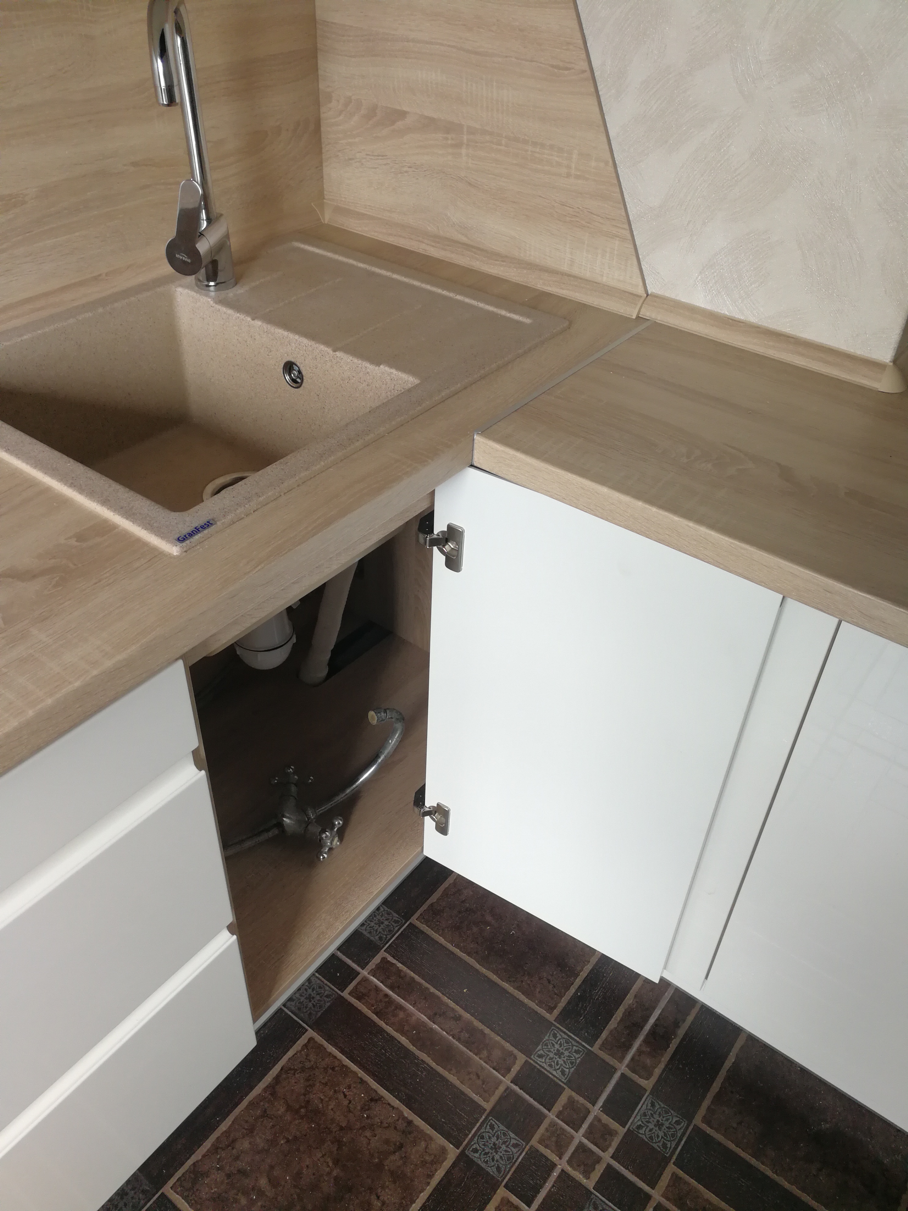Угловая кухня со столешницей и сушкой в комплекте. Размер – 1,5х2,4 метра.