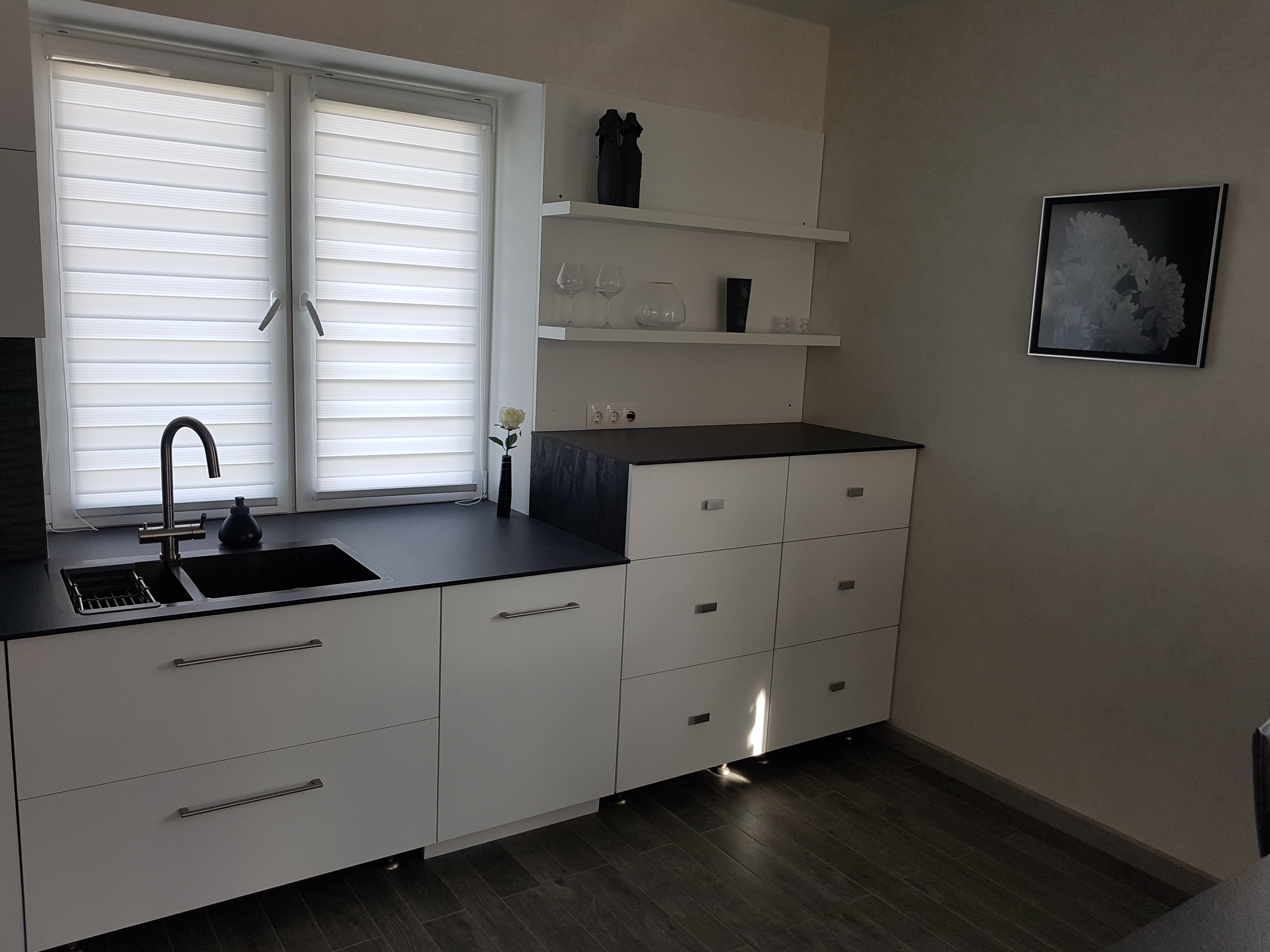 Эффектная расцветка фасадов и столешницы.