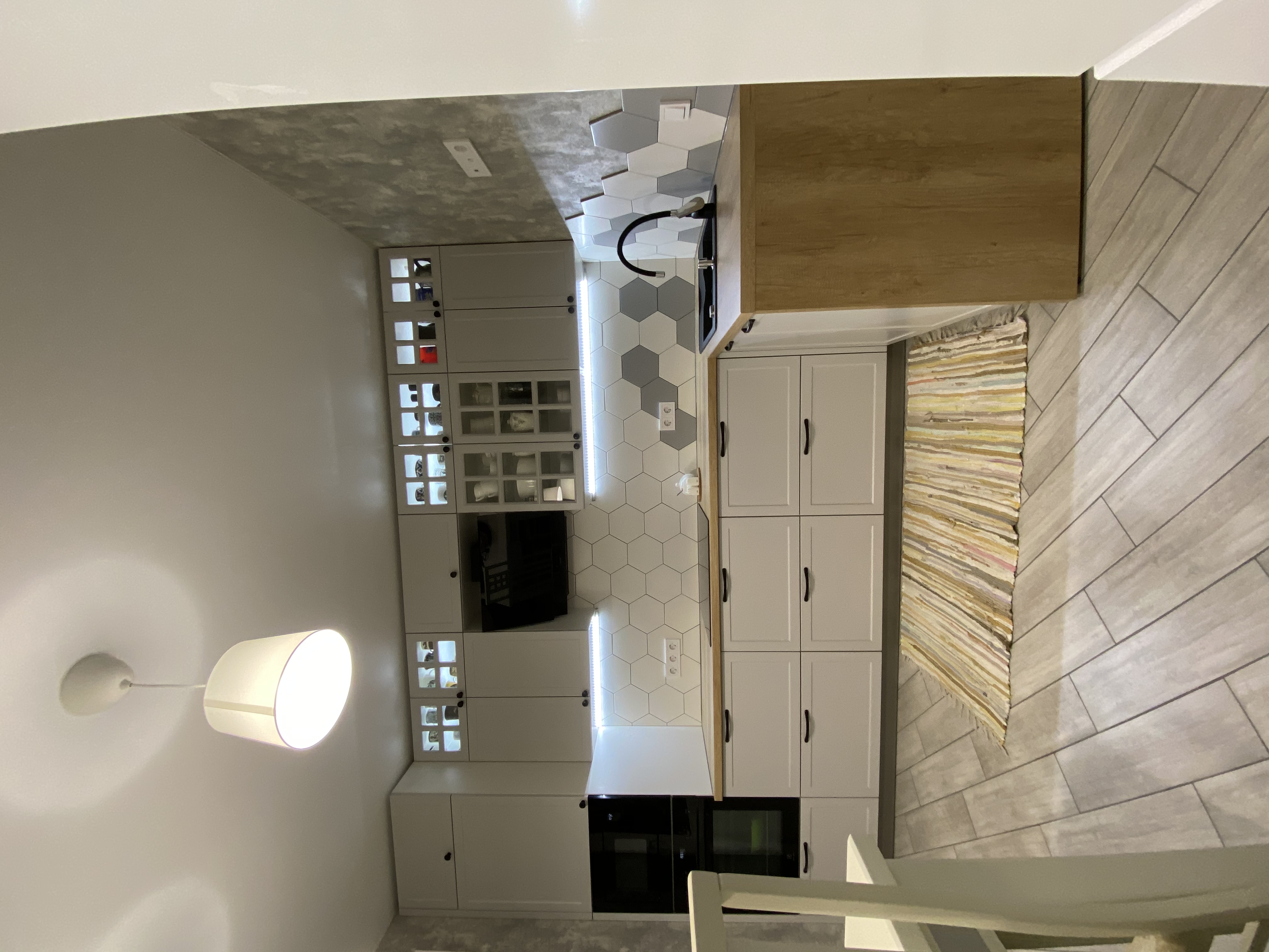 код 110416Верхние фасады с остеклением, подсветка рабочей зоны, ниши для техники.