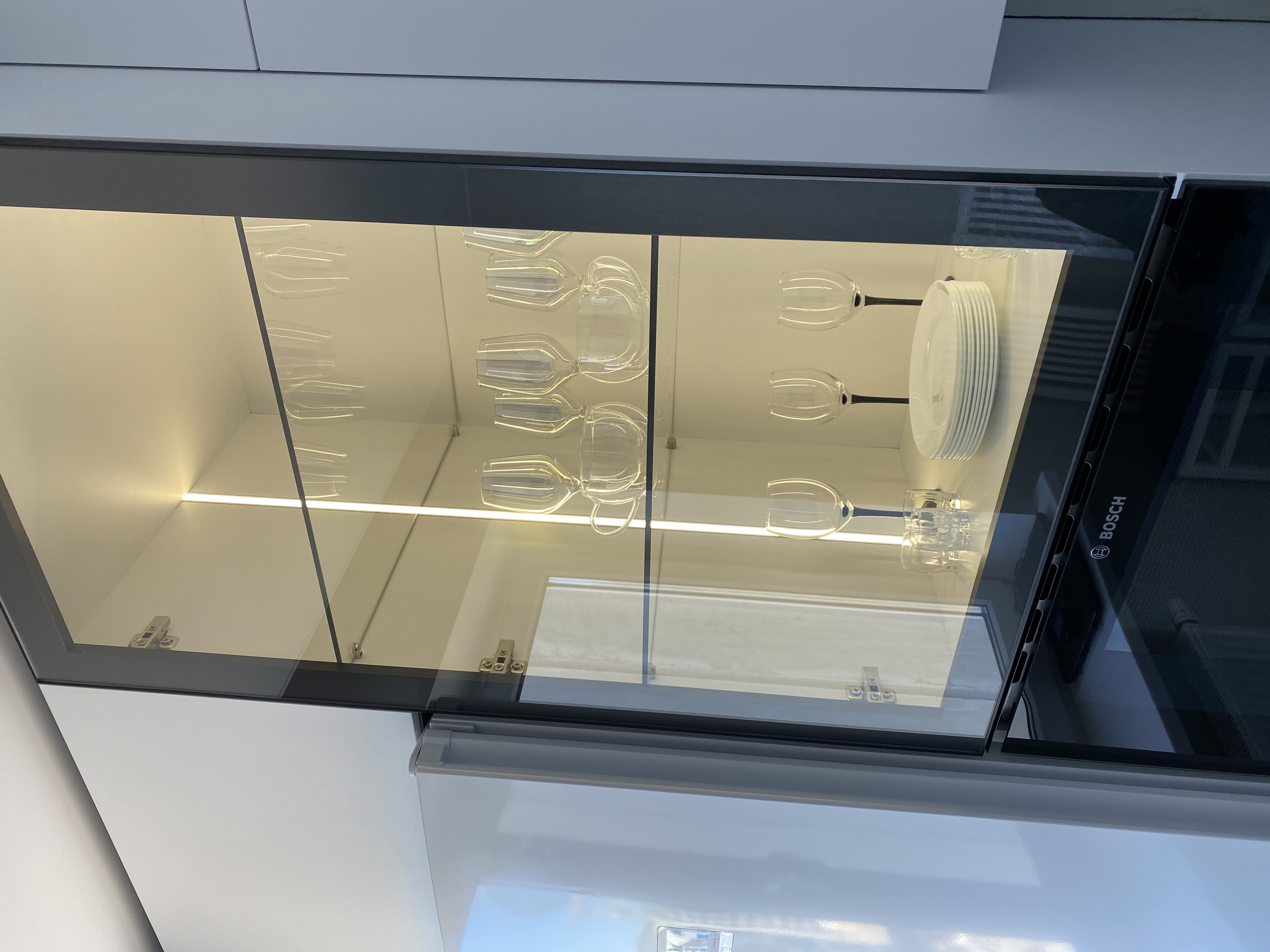 код 108251Застекленная витрина с подсветкой, интегрированные ручки, стильный дизайн.