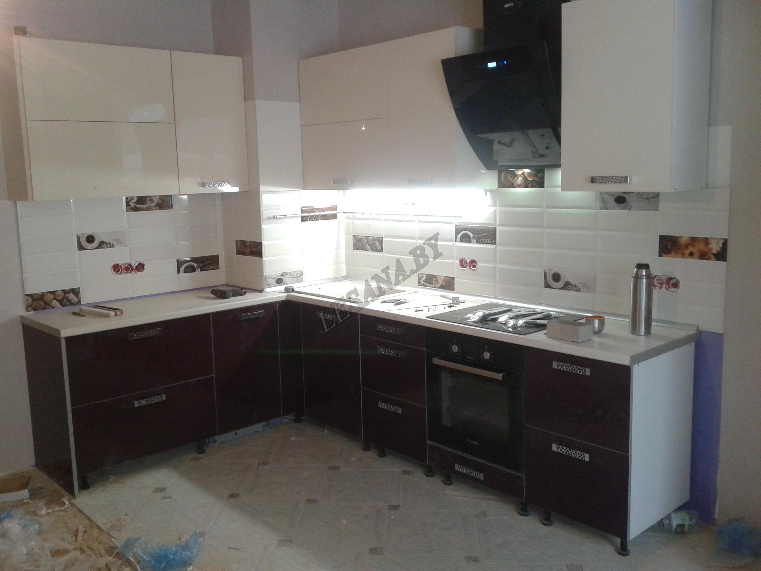 код 88558Декорированные прямоугольные ручки. Кухня оборудована у выступающего угла помещения.