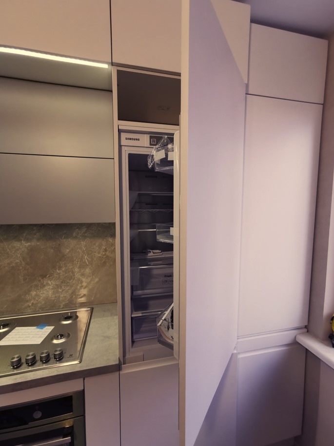 Современный дизайн. Фасады без ручек. Ниши для встраиваемой техники.