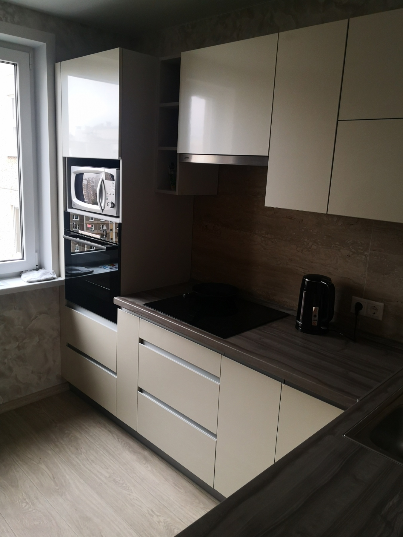 код 111364Интегрированные ручки. Ниши для техники. Материал фасадов: пластик.