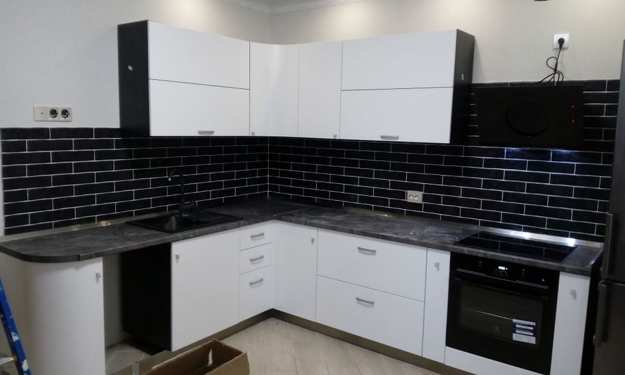 Стандартная кухня из 8 модульных шкафов. ЛДСП с матовой пленкой.