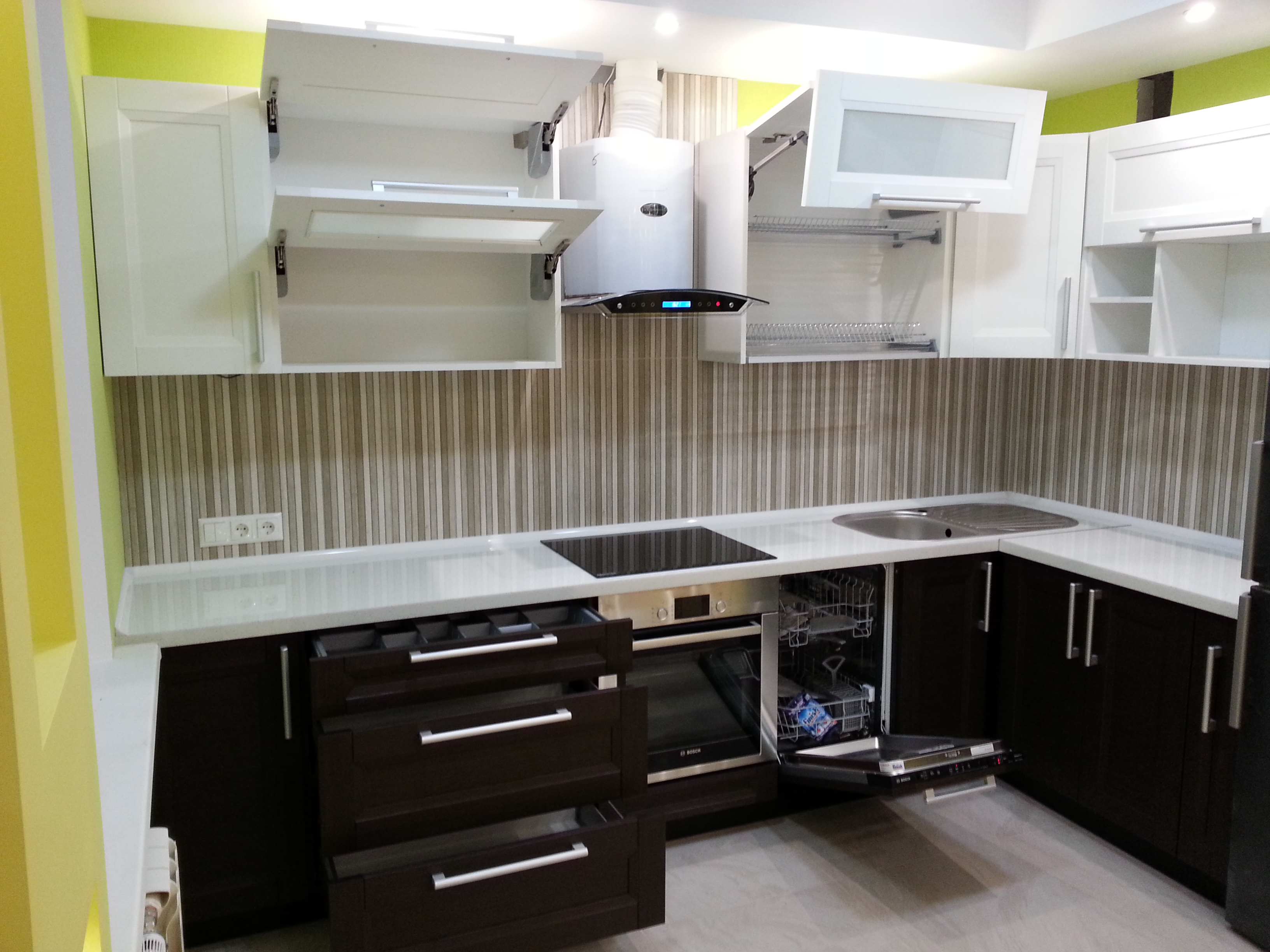 Современный дизайн, качественные и долговечные материалы, глянцевые фасады.