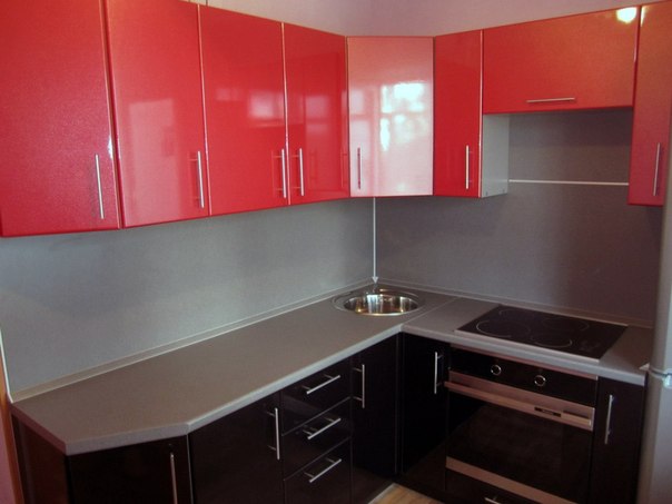 Угловая кухня 150х240 см с темными и светлыми фасадами.
