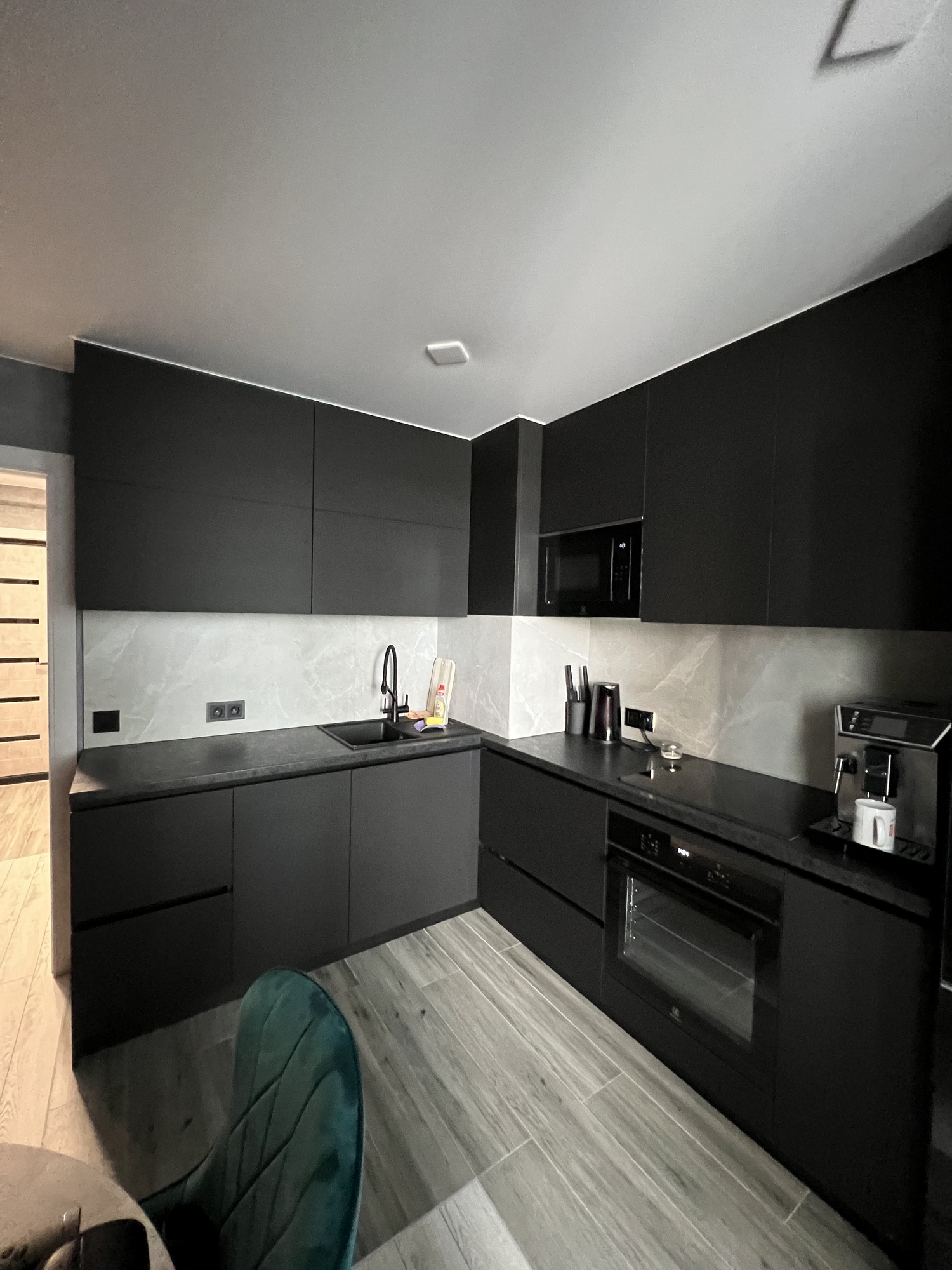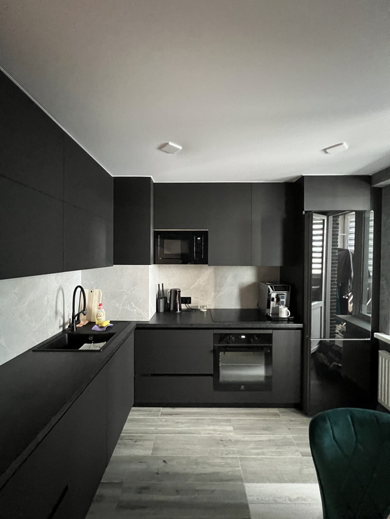 Чёрная матовая кухня на заказ без ручек стиль минимализм Cleaf Piombo