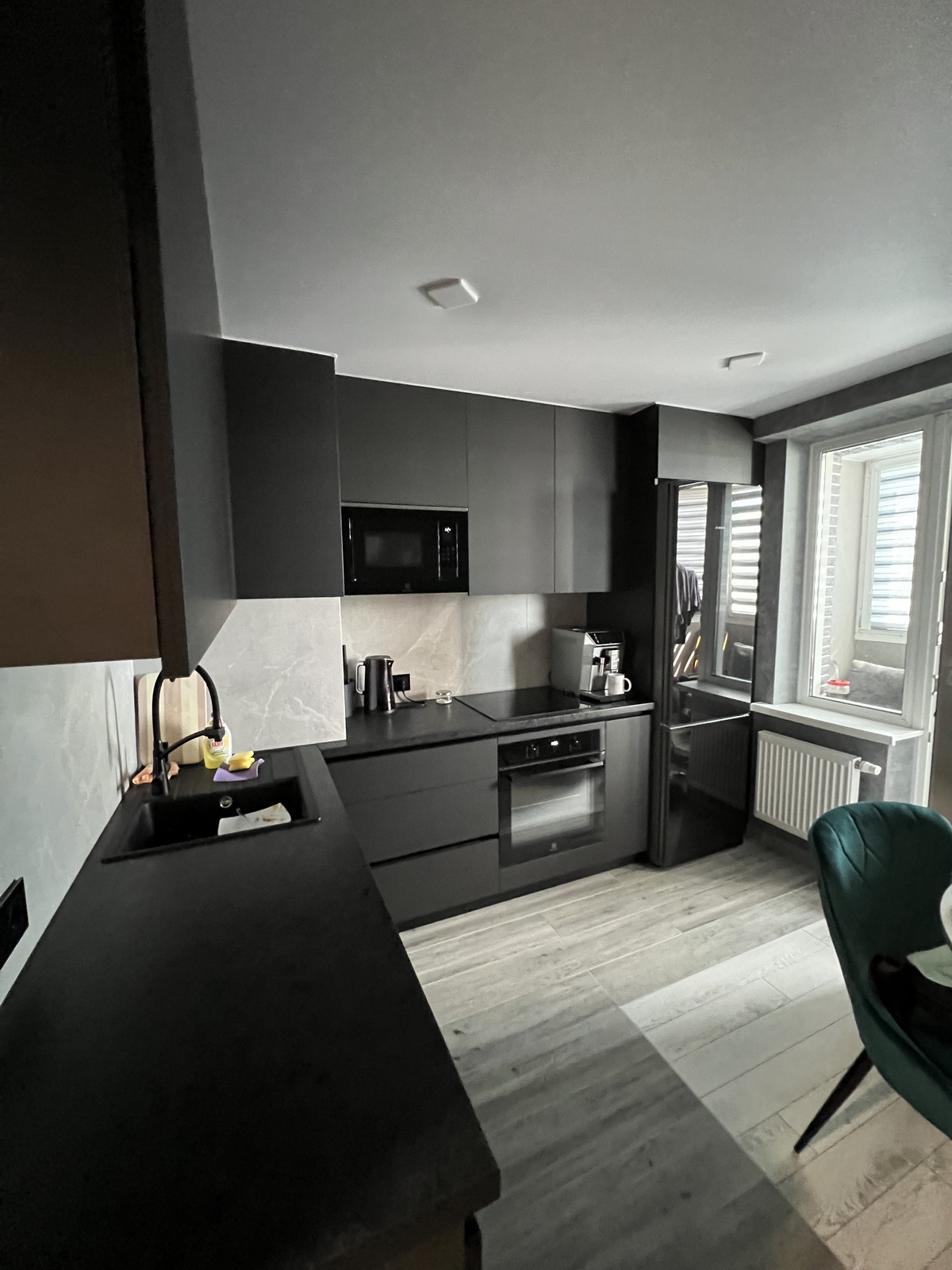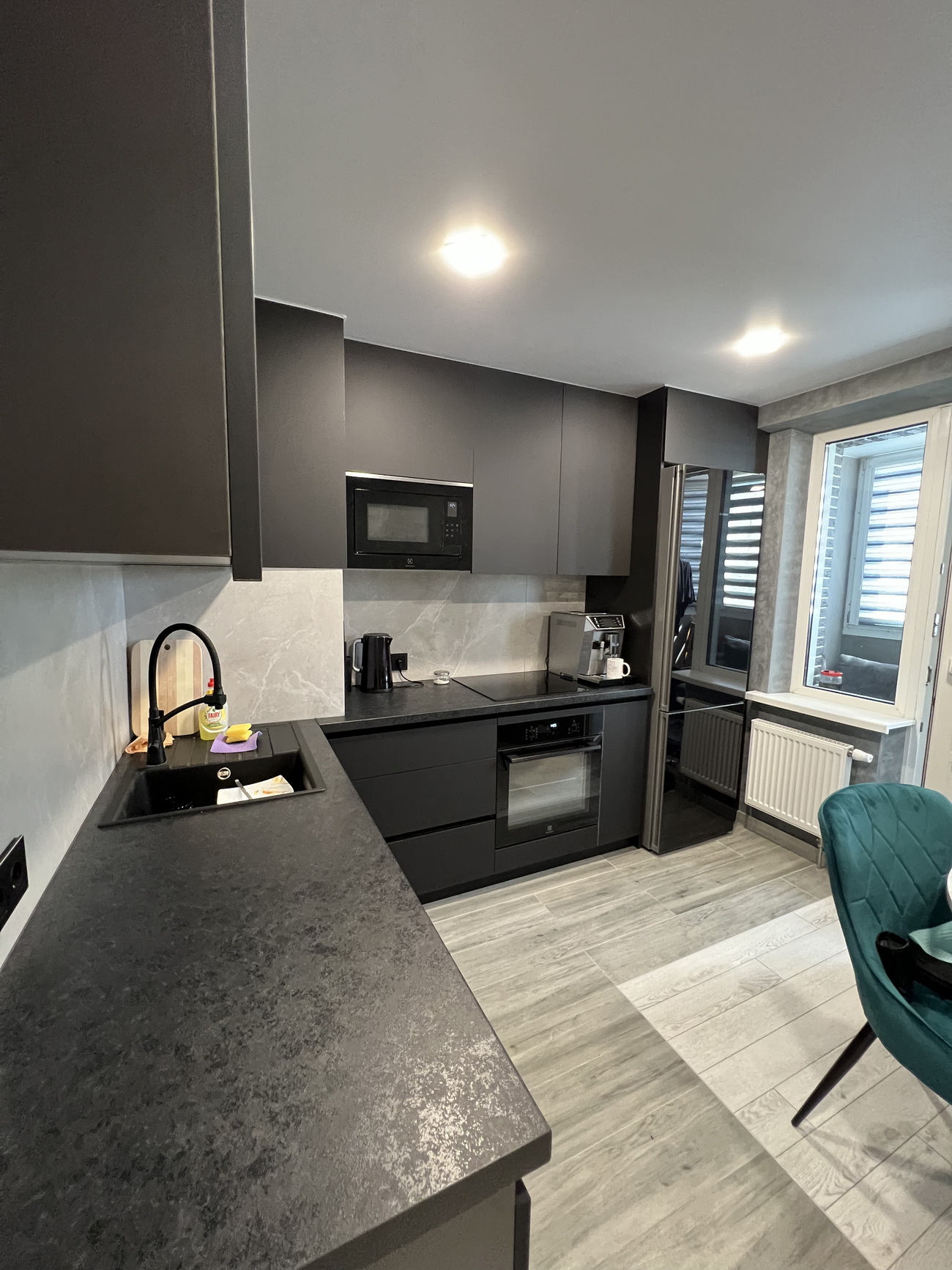 Фасады кухни: МДФ Cleaf Piombo - суперматовое покрытие с эффектом soft touch: мягкие словно бархат на ощупь. Присутствует эффект "без отпечатков пальцев" - на поверхности, при касании, не остаются следы пальцев