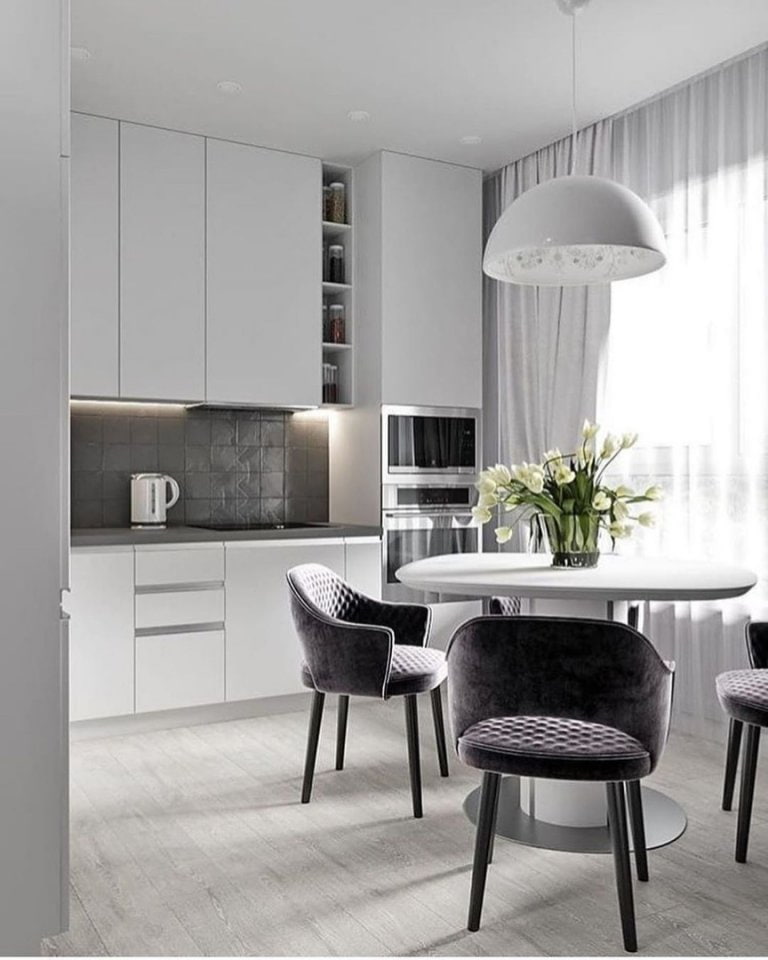 Верхние фасады со стеклом. Ширина кухни 240 см.