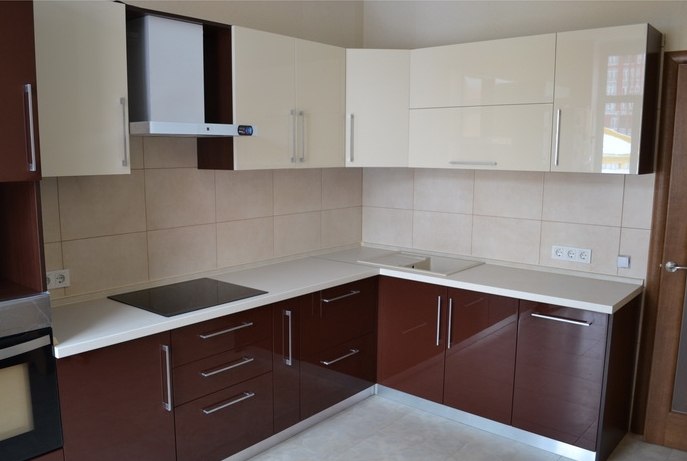 Габаритная угловая кухня с модулем для встраиваемой техники