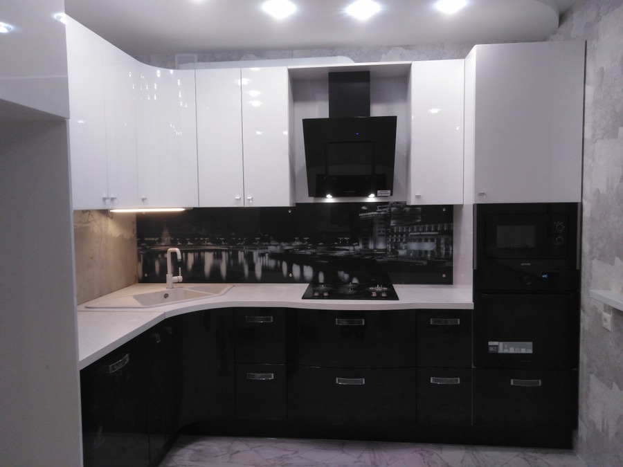 Готовый гарнитур с комбинированными фасадами из ЛДСП. Ширина кухни 120 см.