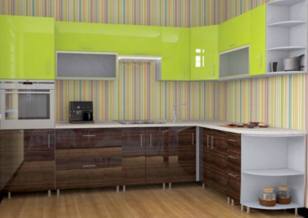 Отличный вариант незаурядной кухни для творческих личностей. Покрытие фасадов HI-GLOSS прекрасно зарекомендовало себя в процессе эксплуатации.