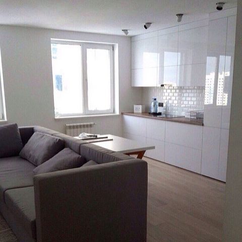 Компактная кухня с открытыми полками