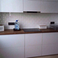 Готовый гарнитур с комбинированными фасадами из ЛДСП. Ширина кухни 140 см.